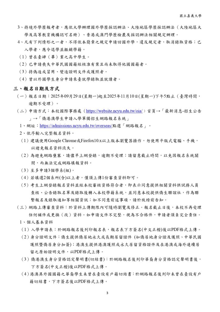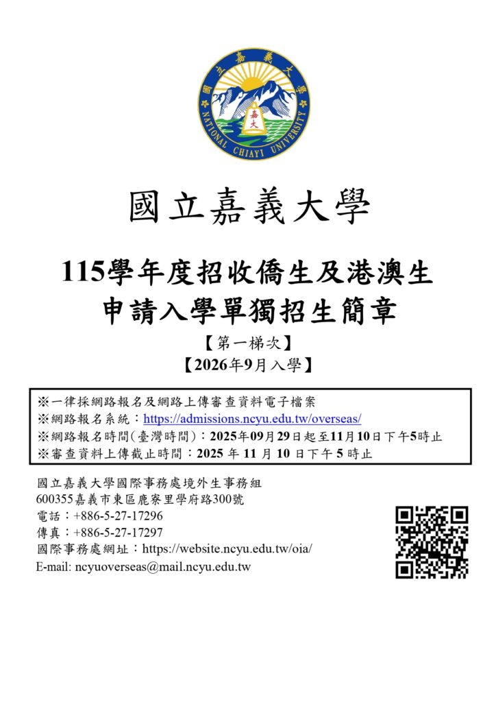 国立嘉义大学2026年秋季班侨港澳生單獨招生熱烈起跑中