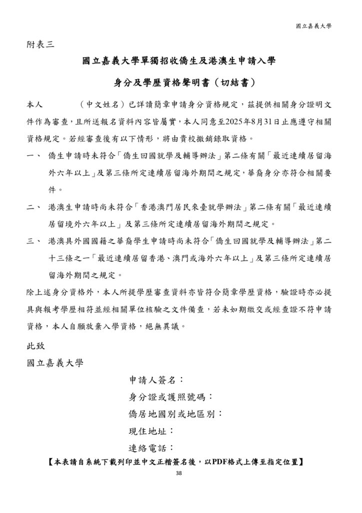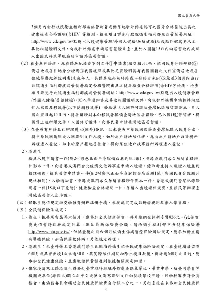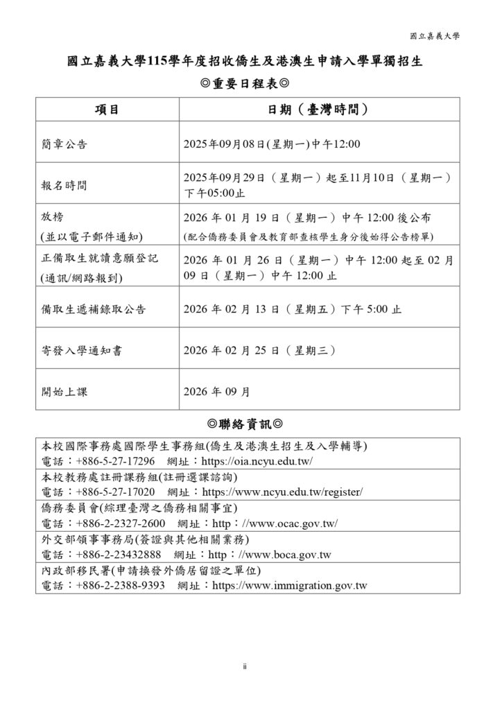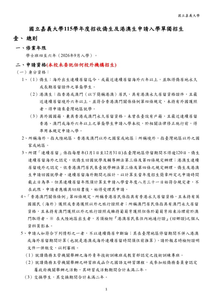 2024年嘉大僑生秋季班單獨招生第二梯次簡章